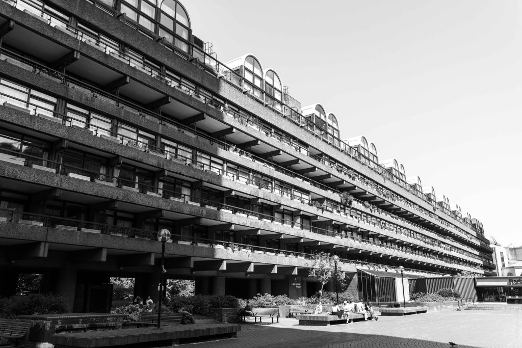 Venturing into London to explore the brutalist movement, I sought to uncover what makes it so special and beautiful. One such landmark is the Barbican Estate, a Brutalist architectural gem featuring green spaces and elevated walkways.